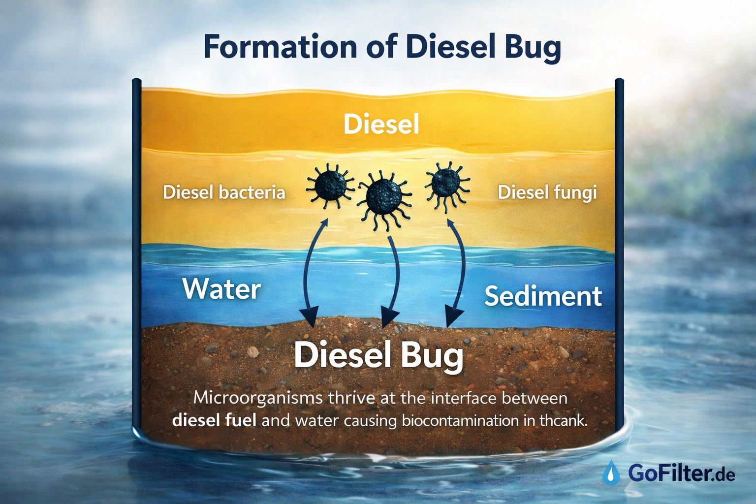 Modern diesel has long ceased to consist only of mineral oil. It contains additives, synthetic components and often biodiesel components. In combination with condensed water, which forms in almost every tank, an ideal environment for microorganisms is created.